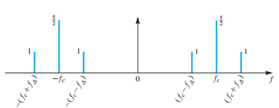 위 그림의 경우 신호의 대역폭은 (fc + f△) - (fc - f△) = 2f△이라고 할 수 있으며, 이 주파수 대역이 fc 주파수를 중심으로 있다.