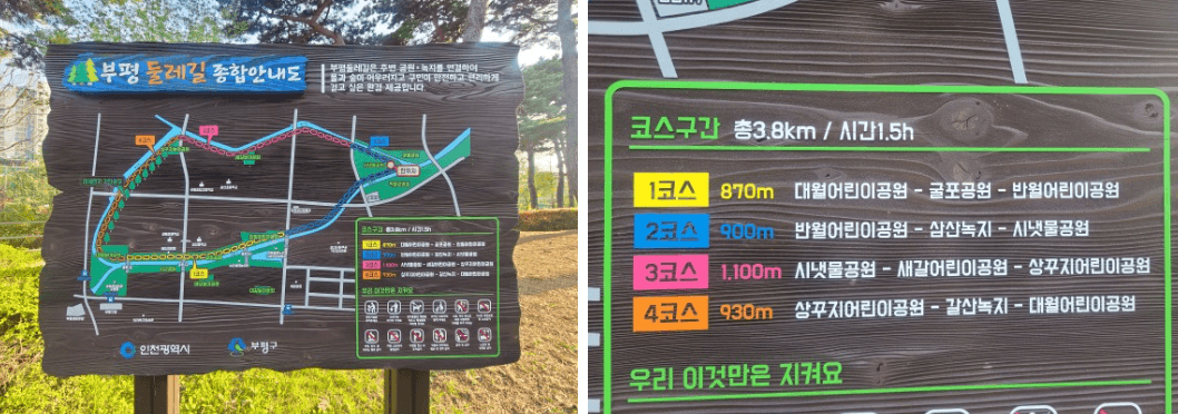 인천 굴포천역 주변의 겹벚꽃 명소입니다. 부평 둘레길로 불리는 인천 내 걷기 좋은 길입니다. 굴포천 역보다 삼산체육관역에서 더 가깝긴 합니다.