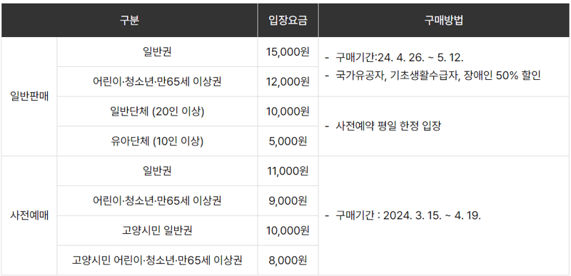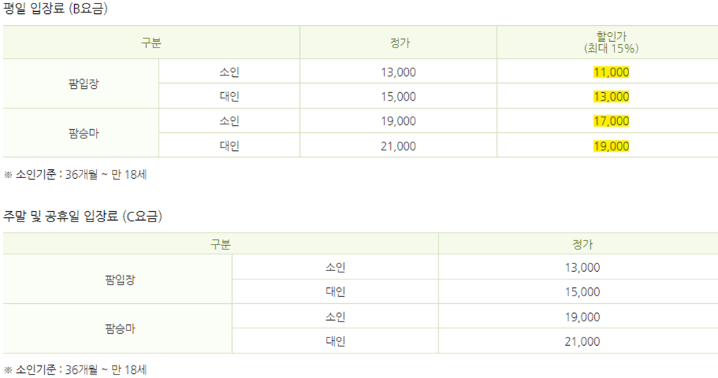- 입장료 : 성인 11,000 / 경로 청소년 9,000 / 어린이 7,000