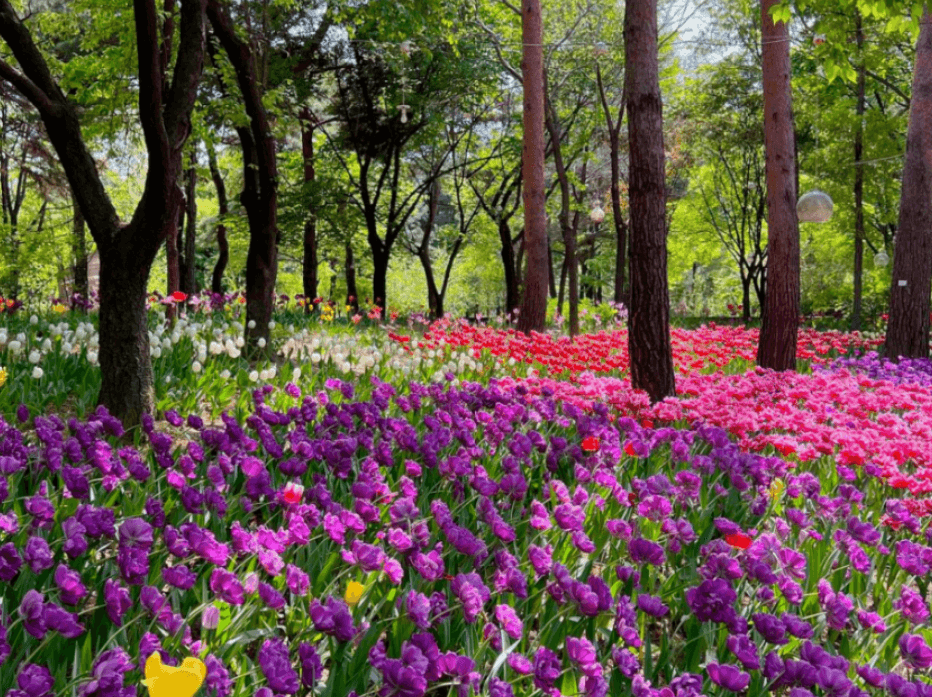 벚꽃이 졌다고 실망하지 않으셔도 됩니다. 4월 말에 서울숲을 방문하면 아름다운 튤립축제를 볼 수 있습니다. 주변에 성수 카페거리가 있어서 맛있는 커피도 함께 즐길 수 있습니다.