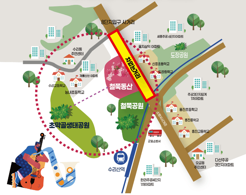 - 주소(위치) : 차없는거리, 철쭉동산, 철쭉공원, 초막골생태공원 등 군포시 일원