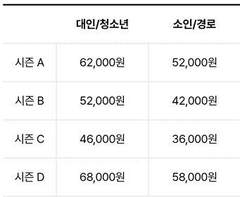 -      시즌 D : 58,000 -> 34,800 / 동반인 결제가 46,400