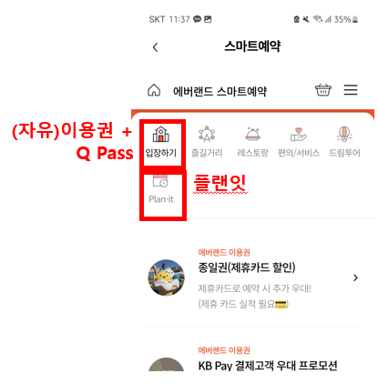 하지만 차이가 있자면 큐패스는 에버랜드 자유이용권에 묶어서 패키지로 파는 상품이고 플랜잇은 따로 구매할 수 있는 제품입니다. 플랜잇을 사용하고 싶으시면 자유이용권을 따로 구매하여야 합니다.