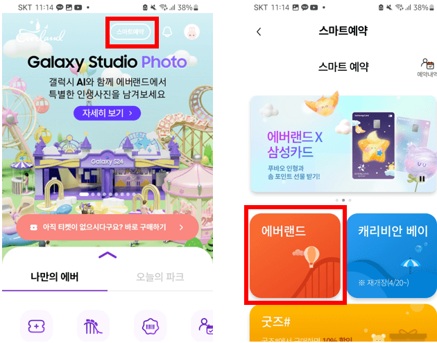 에버랜드 어플에 접속해서 본인에게 가장 맞는 옵션을 선택, 구매하세요.