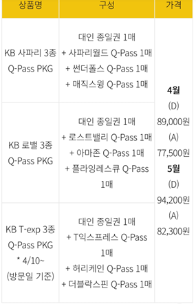필자는 이번달에 이 이벤트를 이용해서 에버랜드를 다녀왔습니다. KB Pay 이벤트에서는 지금 이용권만 팔기도 하고 이용권+Q Pass를 함께 팔기도 합니다.