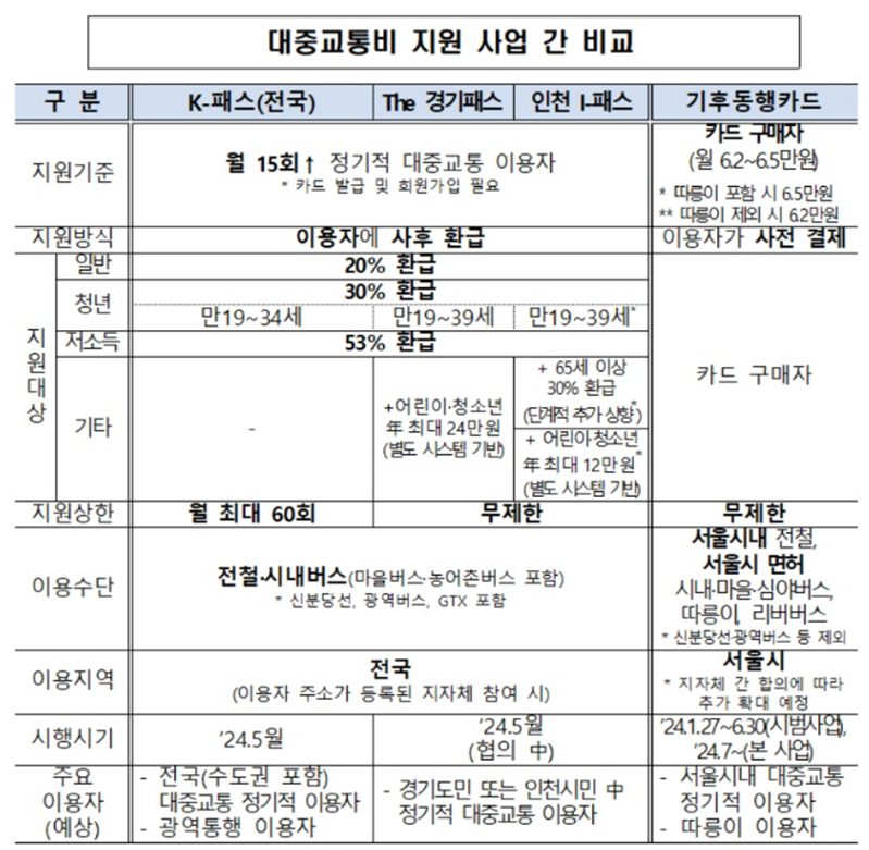 기후동행카드 vs 더경기패스 vs I-패스 vs K패스