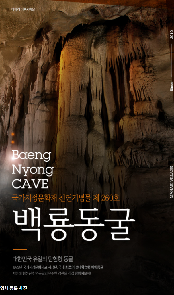 백룡동굴은 비교적 험한 동굴이니 노약자가 있을 시 방문을 감사해 주세요. 동굴 입구에 들어가면 탐험관이 동굴에 대해 재미있게 설명을 해 준 답니다.